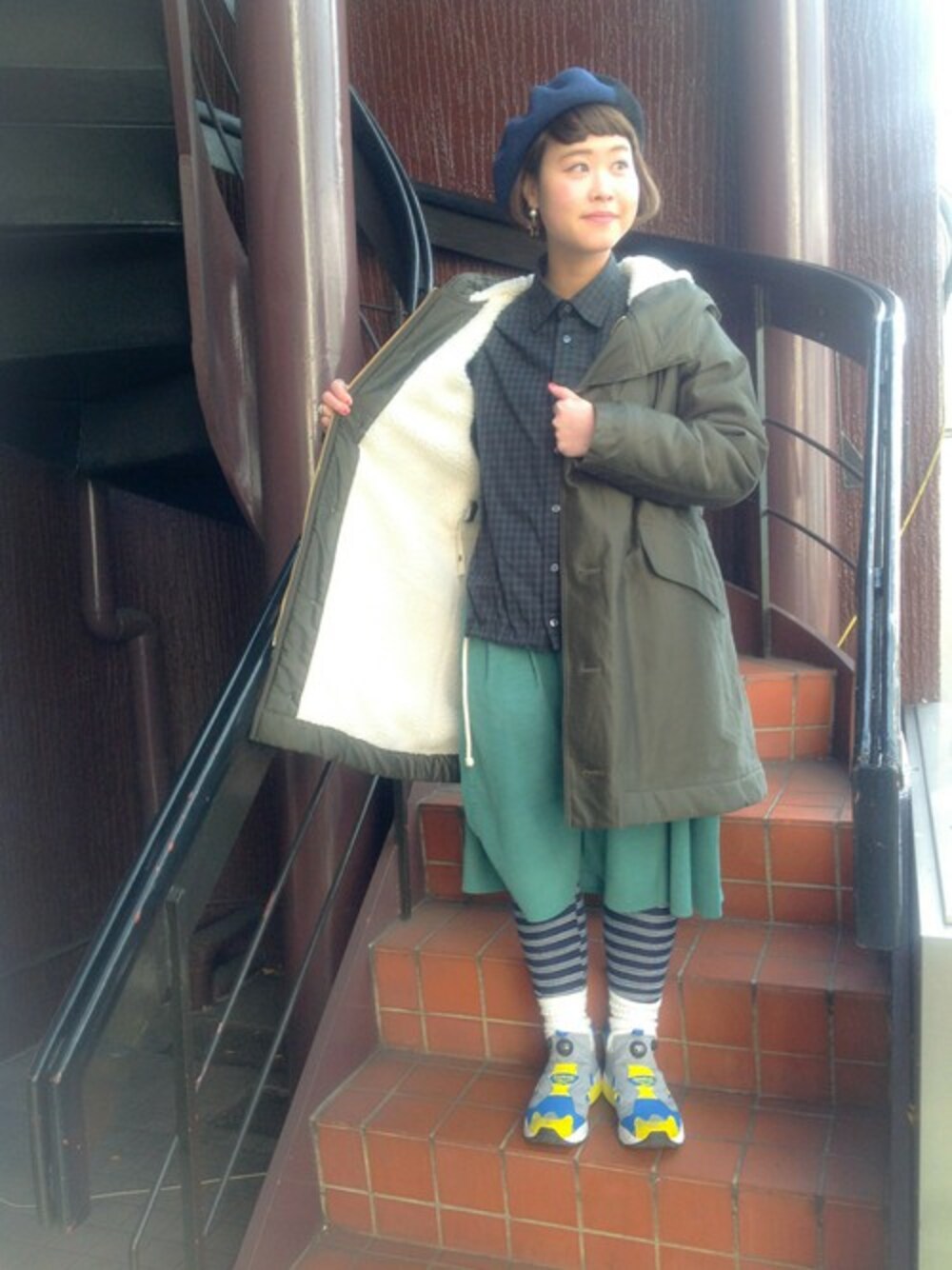 中がボアなので暖かいです(^_^) スカートにも、パンツにも合うアウター! 足元はさし色を。