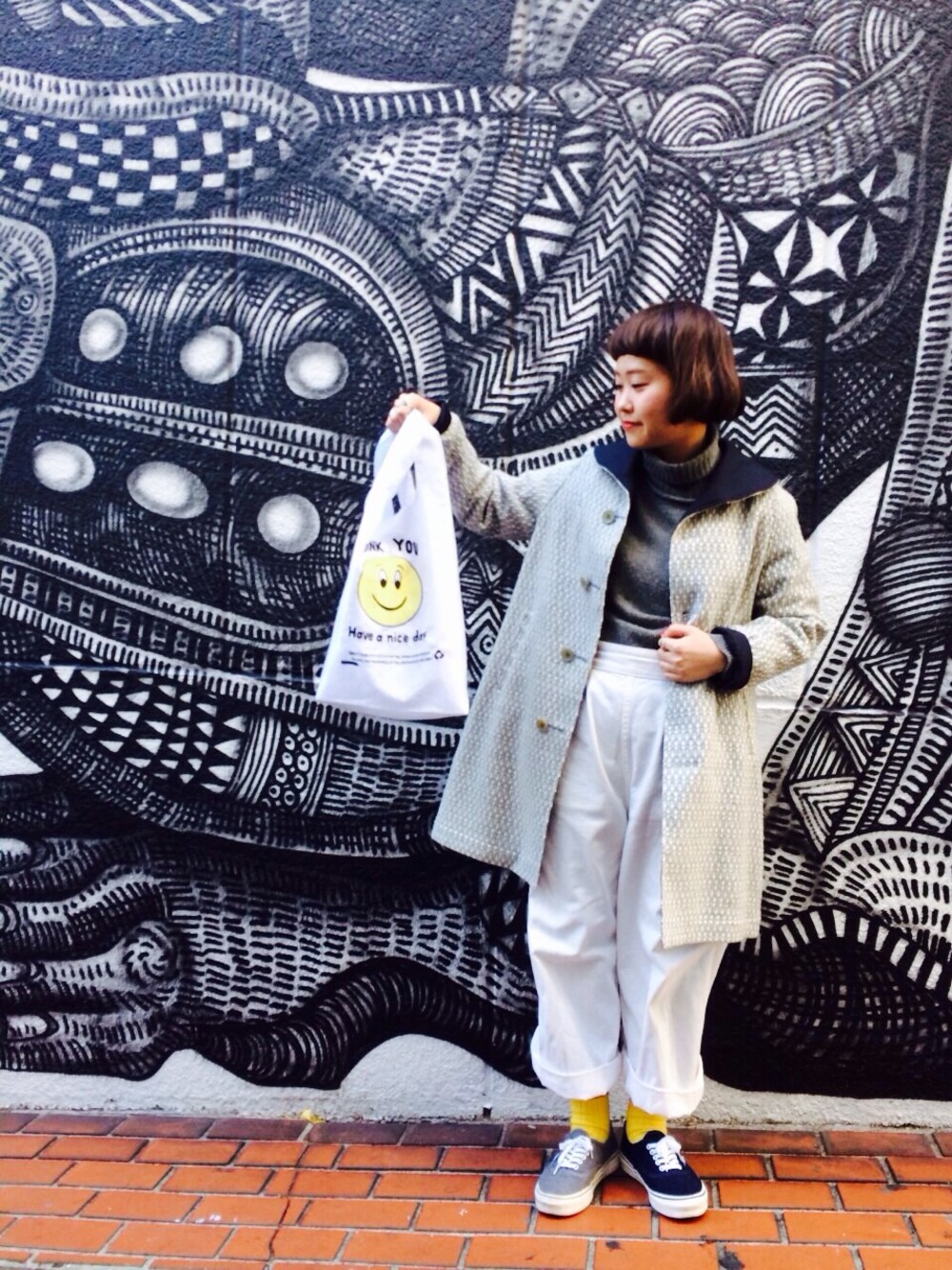 真っ白のワイドパンツ。 タートルと合わせてインしてます。 アウターはなんとリバーシブル(≧∇≦) 春先まで使えるコートです!