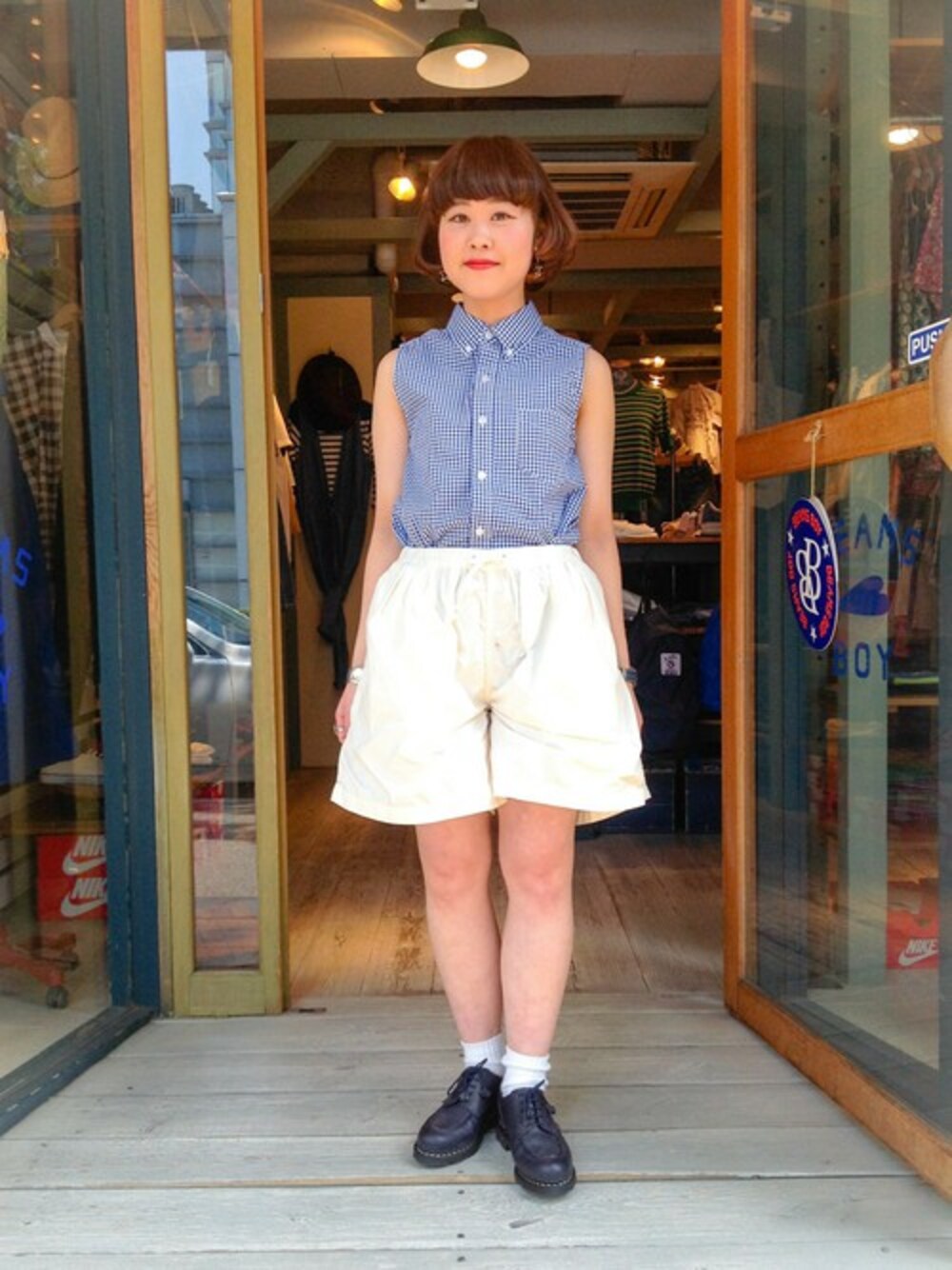 KURODA AYANOのシャツ/ブラウス「BEAMS BOY / ギンガム ボタンダウン ノースリーブ」を使ったコーディネート