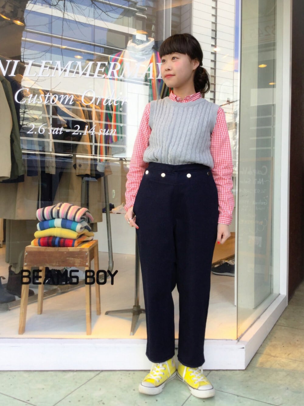 KURODA AYANOのベスト「BEAMS BOY / 5ゲージ ケーブル編み クルー」を使ったコーディネート