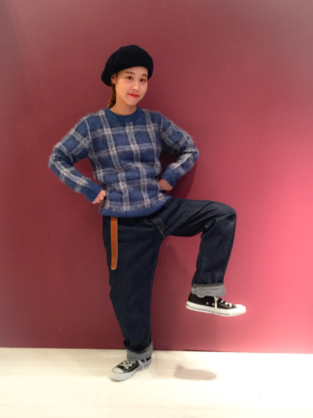 KURODA AYANOのニット/セーター「BEAMS BOY / 5ゲージ タータン クルーネック シャギーニット」を使ったコーディネート