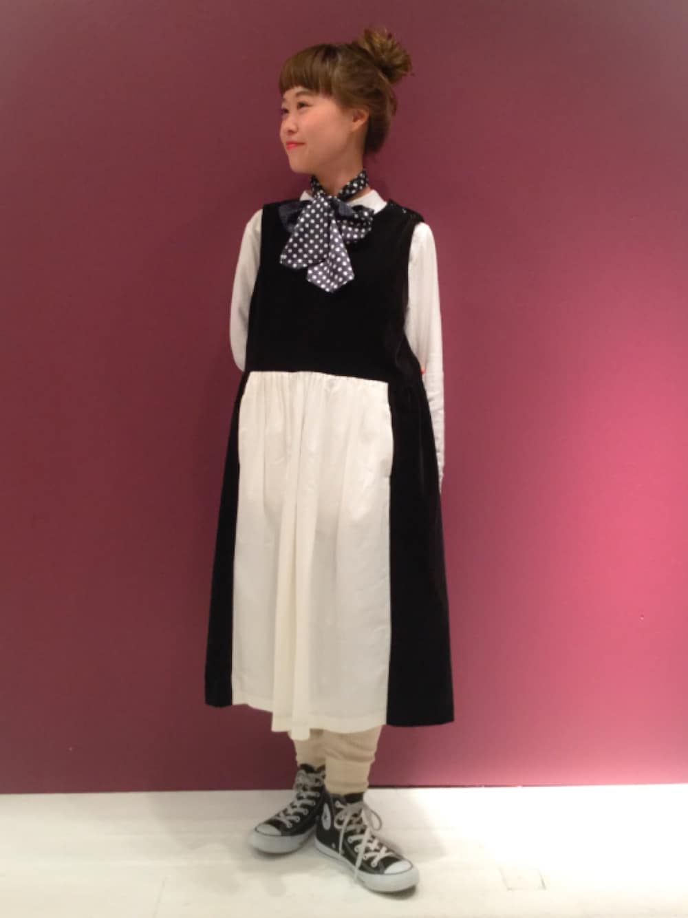 KURODA AYANOのワンピース「BEAMS BOY / 別珍 サテンパネル ノースリーブワンピース」を使ったコーディネート