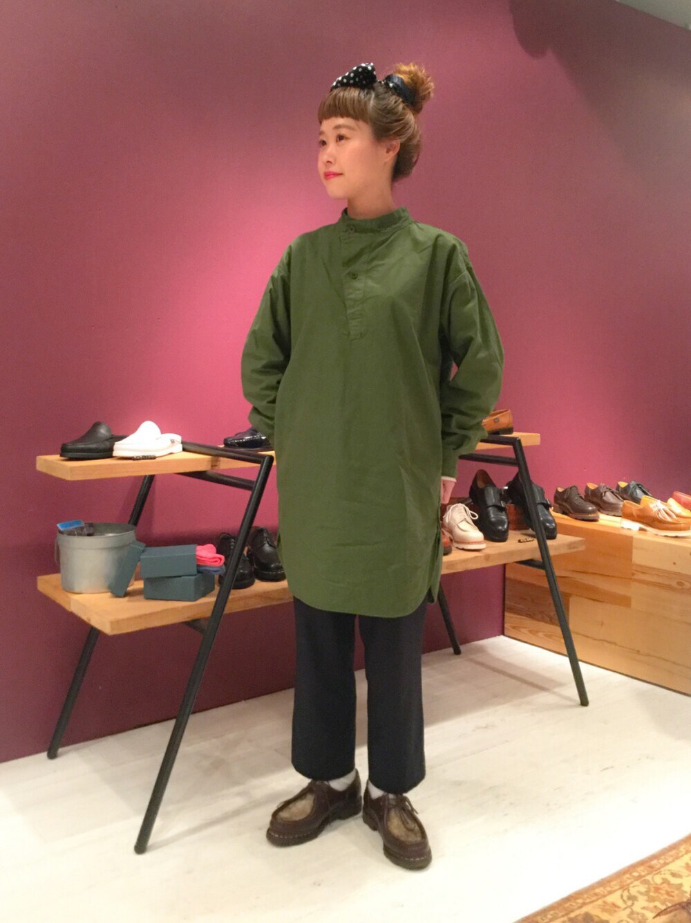 リメイク軍ものシャツに パラブーツ。 男臭いイメージなので ヘアアレンジとスラックスで 女性らしく。