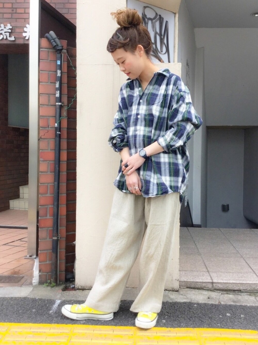 ビームス ボーイ 原宿限定アイテム、 AiEのビッグシャツ。 リネンのこれもまたゆったりなサイジングのパンツと合わせて ゆるっとスタイルです。