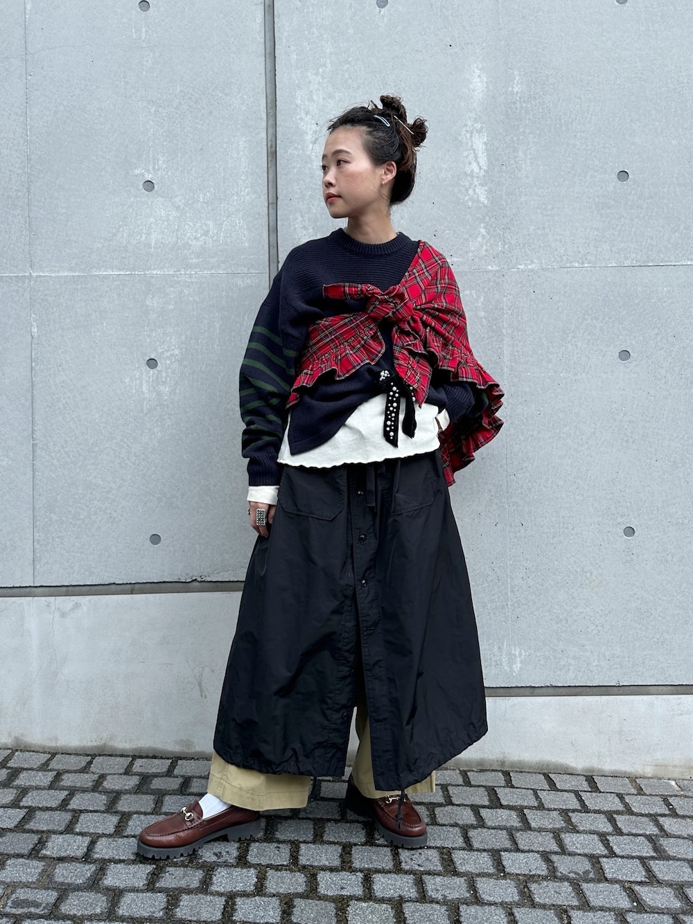 【本日発売!!!】<ENGINEERED GARMENTS>×<BEAMS BOY>の7wayコート。え?コート、、?と思われるかと思いますので、説明します!!コートは、上下がジップで分かれ、スカートにもなるんです。スカート単体で着るとこんな感じになります。ウエストはドローコードでぎゅっと縛り、ボタンを少し開けます。中にはチノパンを忍ばせてちらり♡暗くなりすぎないよう、チェックのストールを襷掛けをして、アクセントを加えました!気になられた方は、お気に入りにご登録ください!