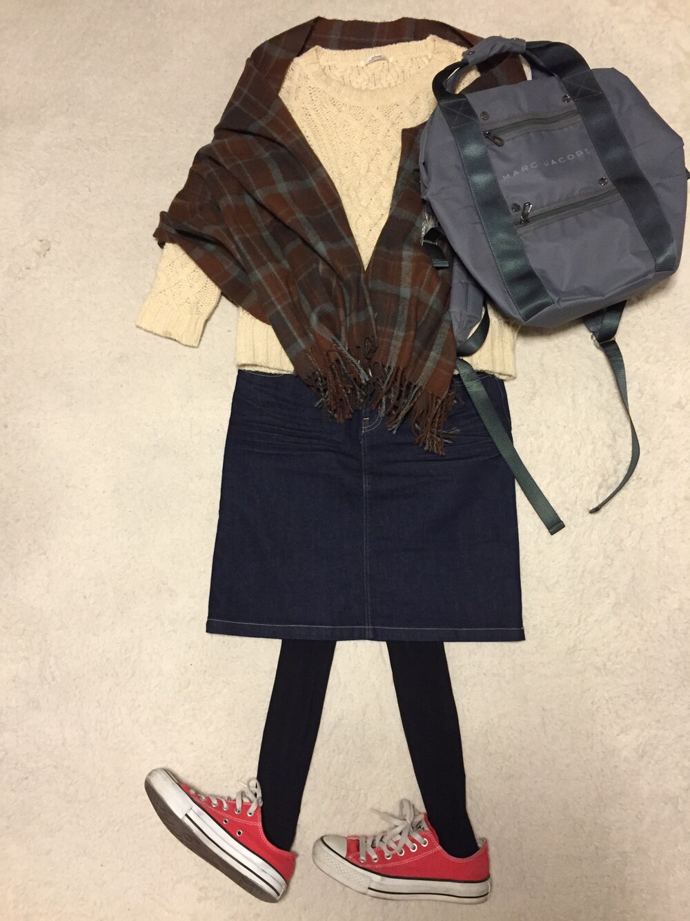 今日の通勤こーでねーと♩ 今日はニットが主役です(^ν^) 形も色もざっくり具合も全て好き! 本当は赤チェックのストールがいいのだけど 持ってないので( ; ; )仕方なくブラウン。 なので靴を赤にして色味をプラス♩ 今日もやっぱりシンプルです*