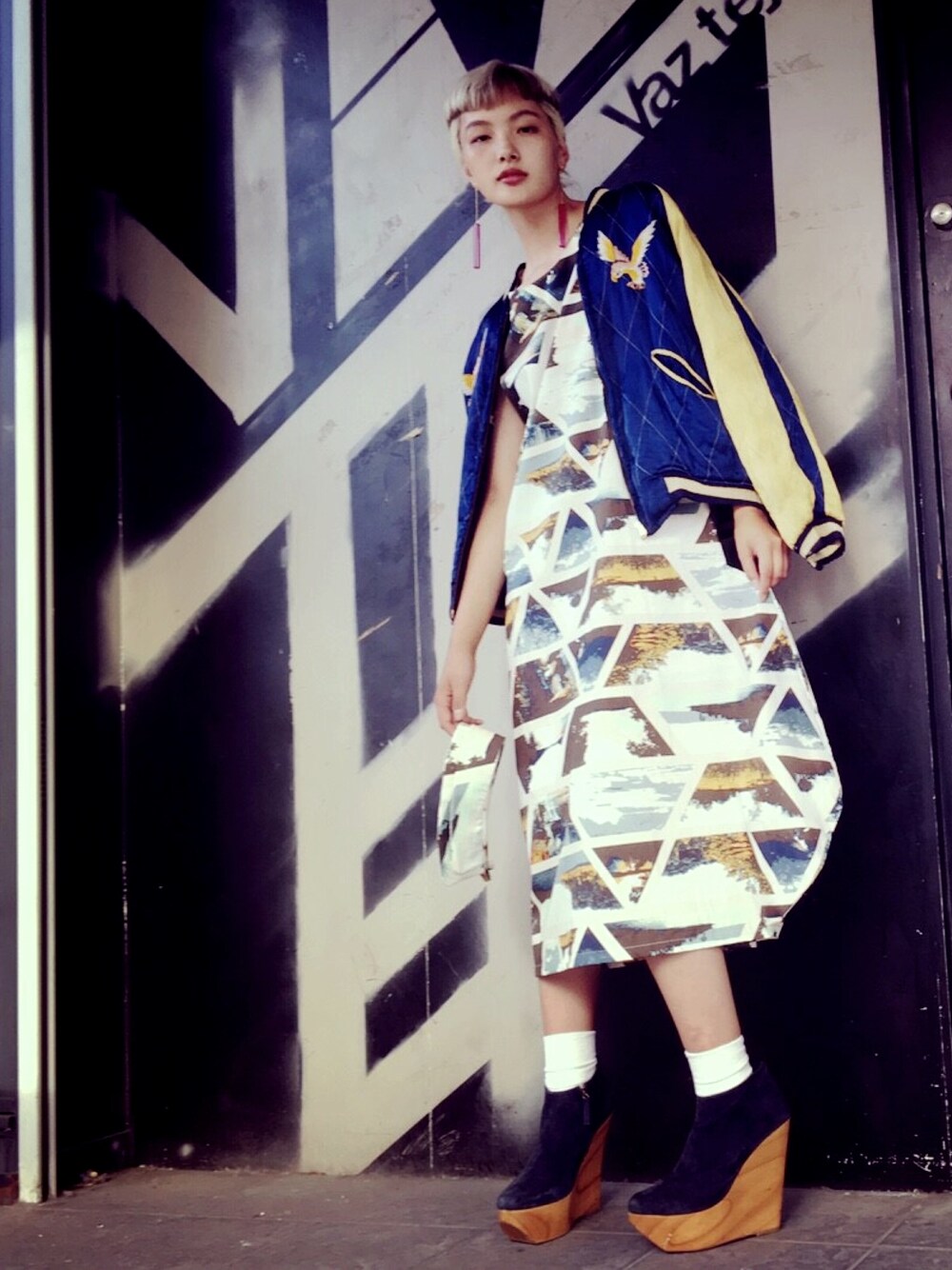 インパクトのあるワンピース。 あえてスカジャン羽織ってみる🇯🇵