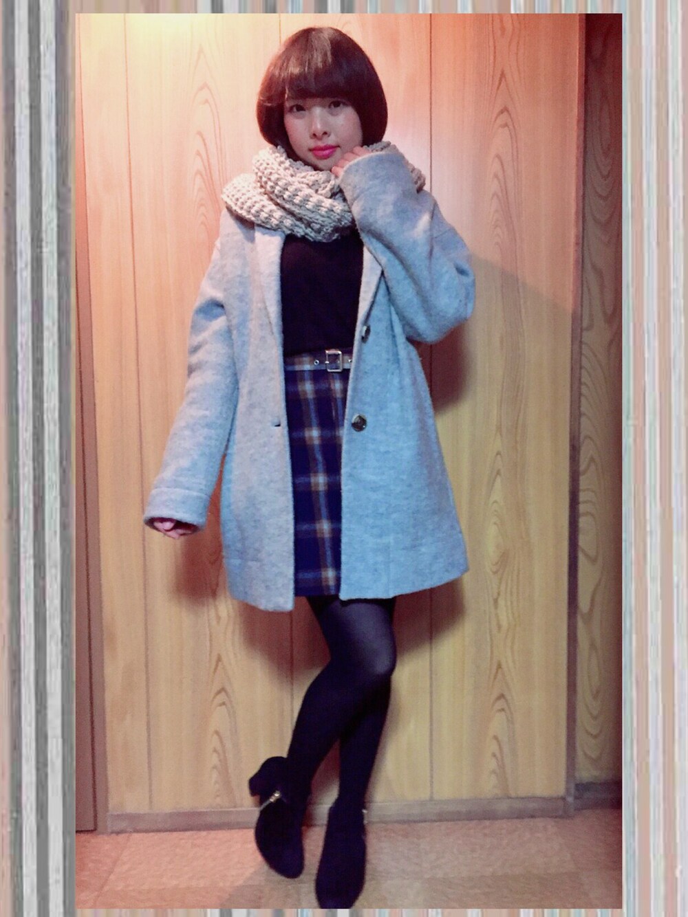 身長が低いので少しボリューム感のあるスヌードを巻いて目線が上に行くようにしました(*^_^*)