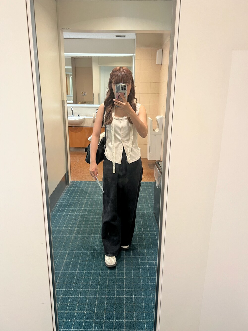 ayano☺︎のデニムパンツ「【3サイズ展開/低身長サイズ】デニムタックワイドパンツ」を使ったコーディネート