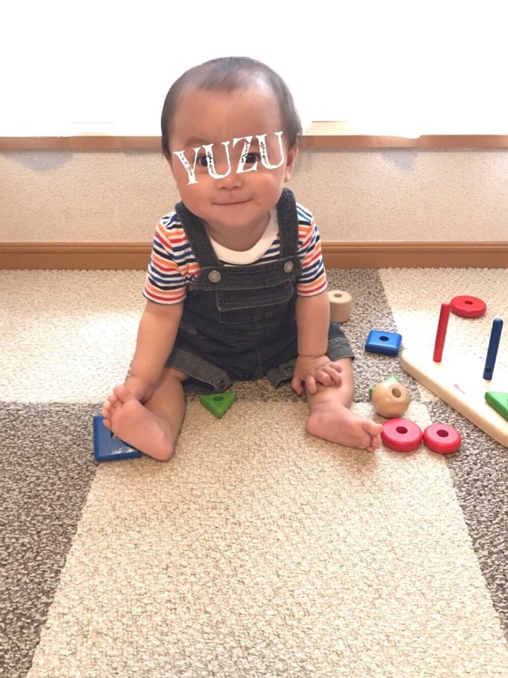 このサロペットで歩く姿を楽しみにしてるんだけど、お腹ぱんぱんの息子… いつまで着せられるかしら、、、