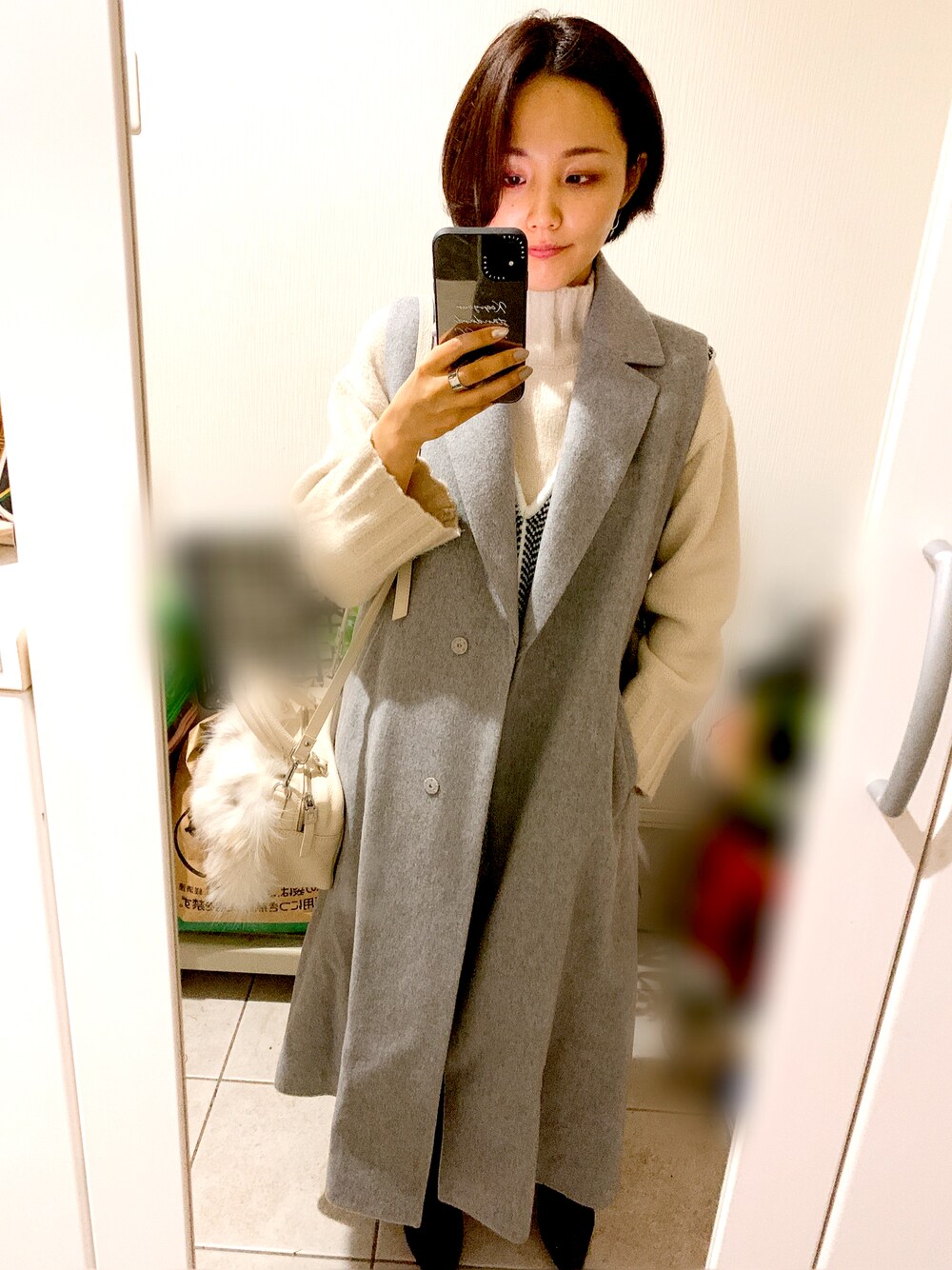 ヘリンボーンワンピース! Vネックのヘリンボーン柄ワンピースと、BEAMSのファーバッグをメインにしたコーデです✨ ワンピースが膝丈なので、ロングコートで縦ラインを強調しました👍 バッグは冬らしくホワイトのファーバッグをチョイス!足元はポインテッドブーツで辛口に仕上げました☺️ ファー可愛いな💕