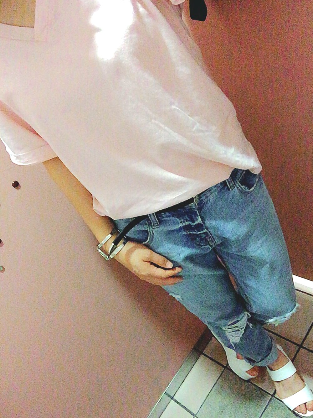 今日はお気に入りのピンクのVネックTシャツを着ました〜💓💭 デニムとすごく合う👍🏻👍🏻