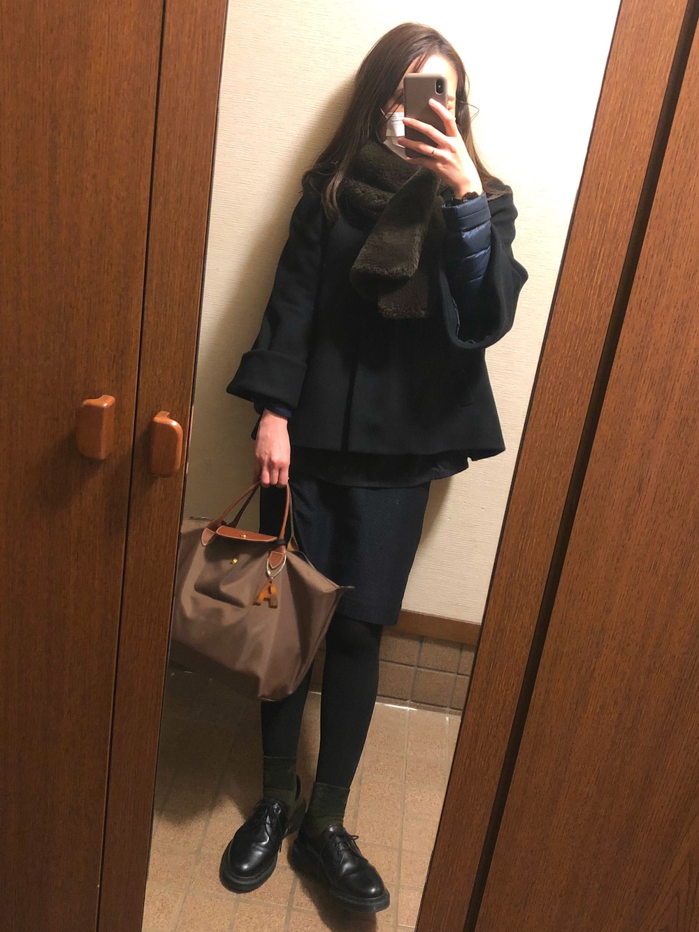 通勤のブラックコーデ。 靴下だけカーキにしてカバンと合わせてみたり。トップがモフモフしていて冬感のあるお気に入り。 このブルゾンも個人的どストライクな形なので大事に着ています。