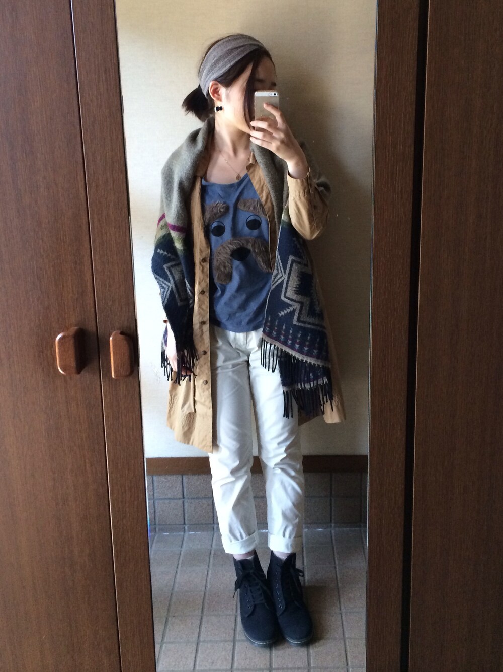 久しぶりにひげTを出しました。 これ着てる人見たことないんだけど…。笑 持ってる人、いないかな。 あったかい日なのでトレンチです。 ストールはヘアバンドとTシャツに色を合わせました。