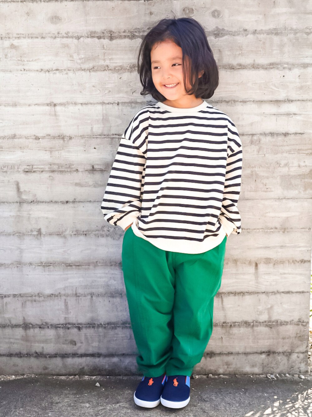 suzuのTシャツ/カットソー「【ママとおそろい】ボーダーボリュームスリーブロンT」を使ったコーディネート