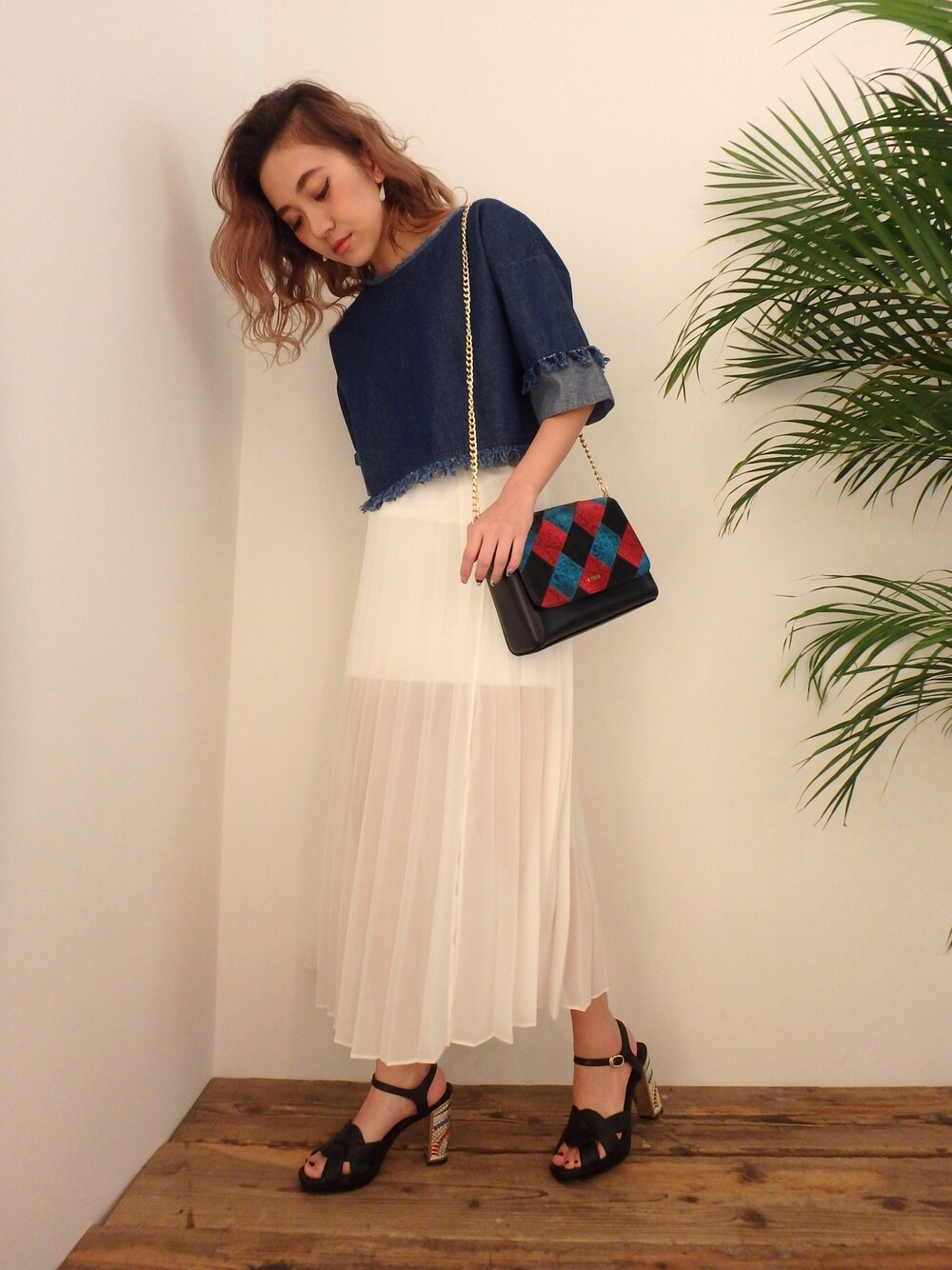 プリーツスカートとデニムの組み合わせ✨❣