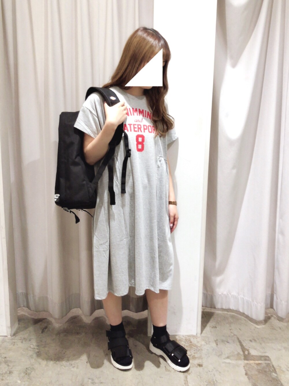 カレッジ切替ワンピース🎾★ グレーに赤文字の組み合わせって かわいい( ˘ω˘ )💕✨ サイドにギャザーが施され、 ゆったりしたワンピースです♪