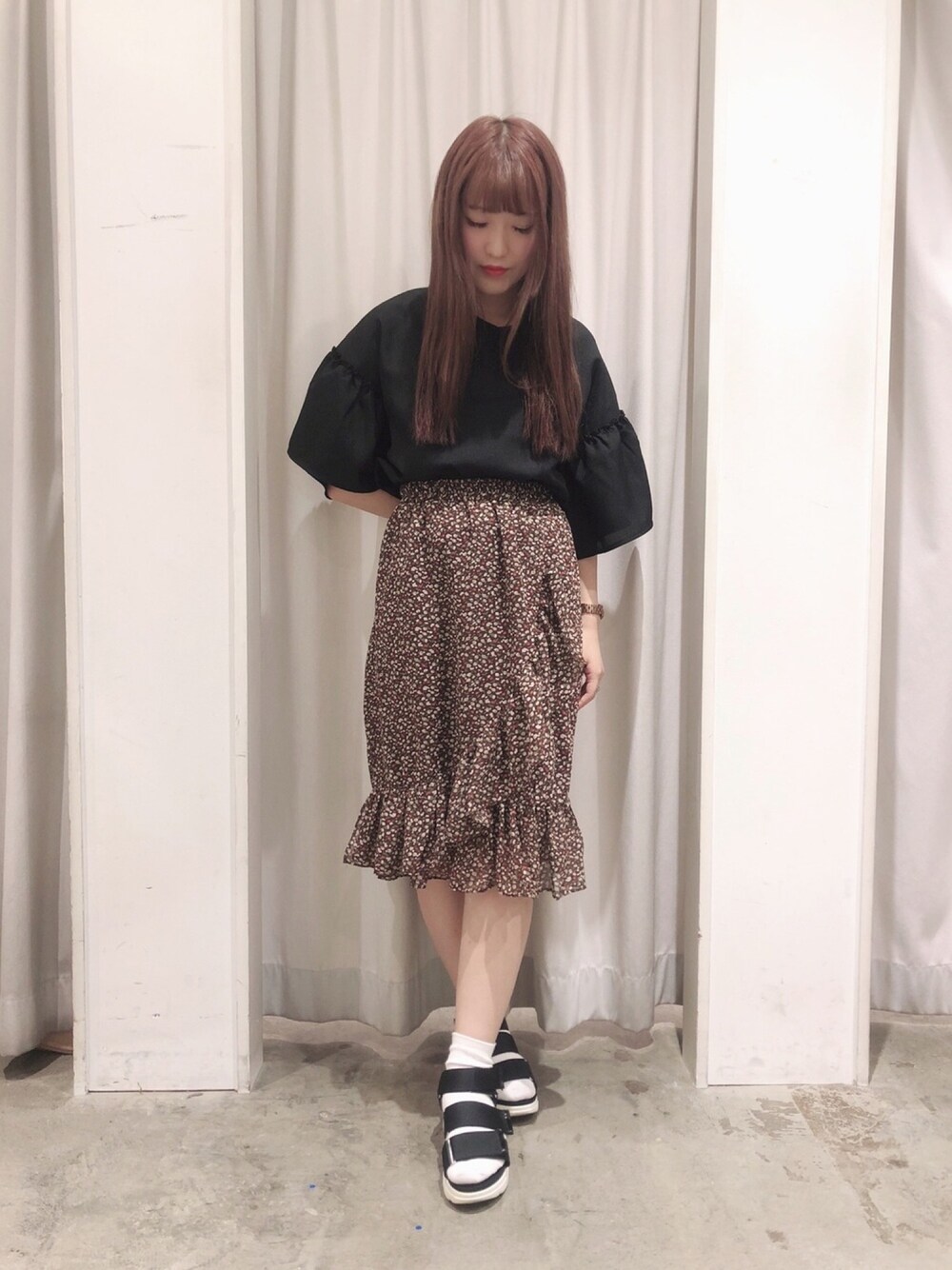 裾にかけてふわっと広がるデザインが かわいいアシメスカート❤️ 小花柄がレトロチックで オシャレです(OvO)✨ シフォン素材なので 今の季節から長く着れます★ ブラウスは袖がボリューミー✨ 着痩せしてみえます!!