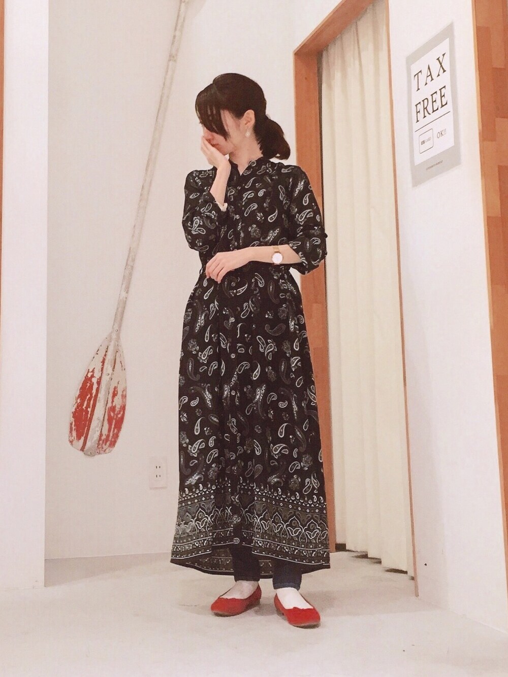 ブランド異動してから 初めての更新です😊 ペイズリー柄がかわいい ワンピースに一目惚れしました💓 カジュアルにスキニーと 合わせたコーデ♪ 前のボタンを全部あけると ガウンとしても使えるので 暖かくなったら 羽織として使いたい(´-`).。oO ロングのワンピは 重たくなりがちなので ヘアはまとめました◎