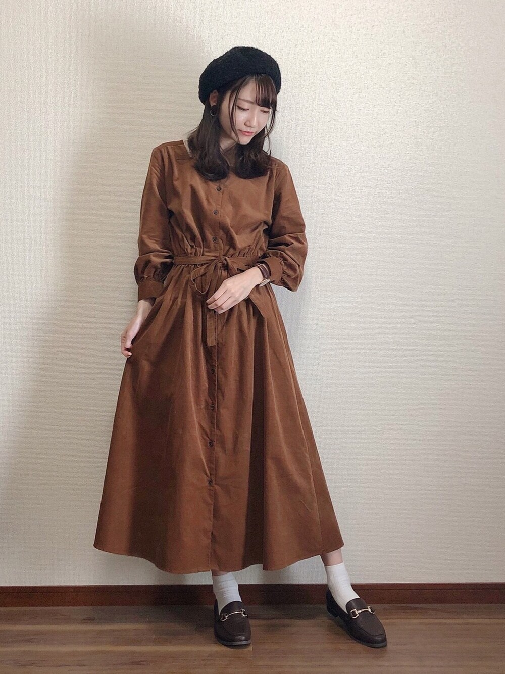 Ayanaのワンピース「スクエアネックコーデュロイワンピース *」を使ったコーディネート