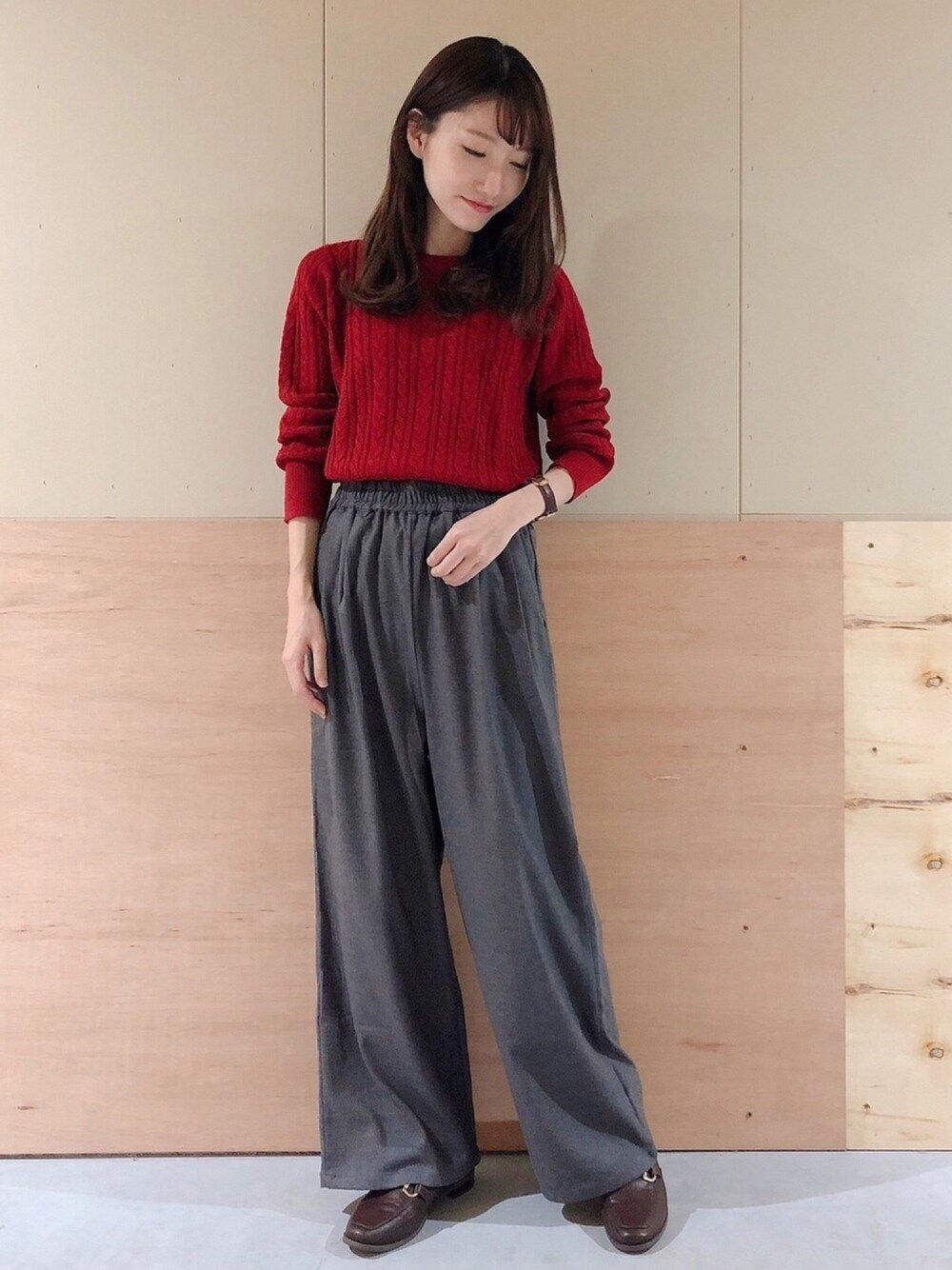 王道でかわいい赤ニット🥰 ベーシックな形でS・Mあるので使いやすい◎ カラバリも豊富です💡 シンプルなワイドパンツは着回し力抜群🙆♀️ こちらもM・Lと2サイズ展開です。