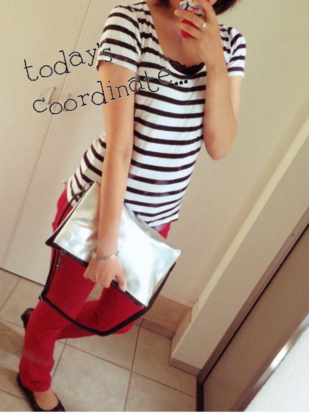 0705 coordinate ** シルバーのクラッチ…♡ シンプルめ ぷらす パキッと赤
