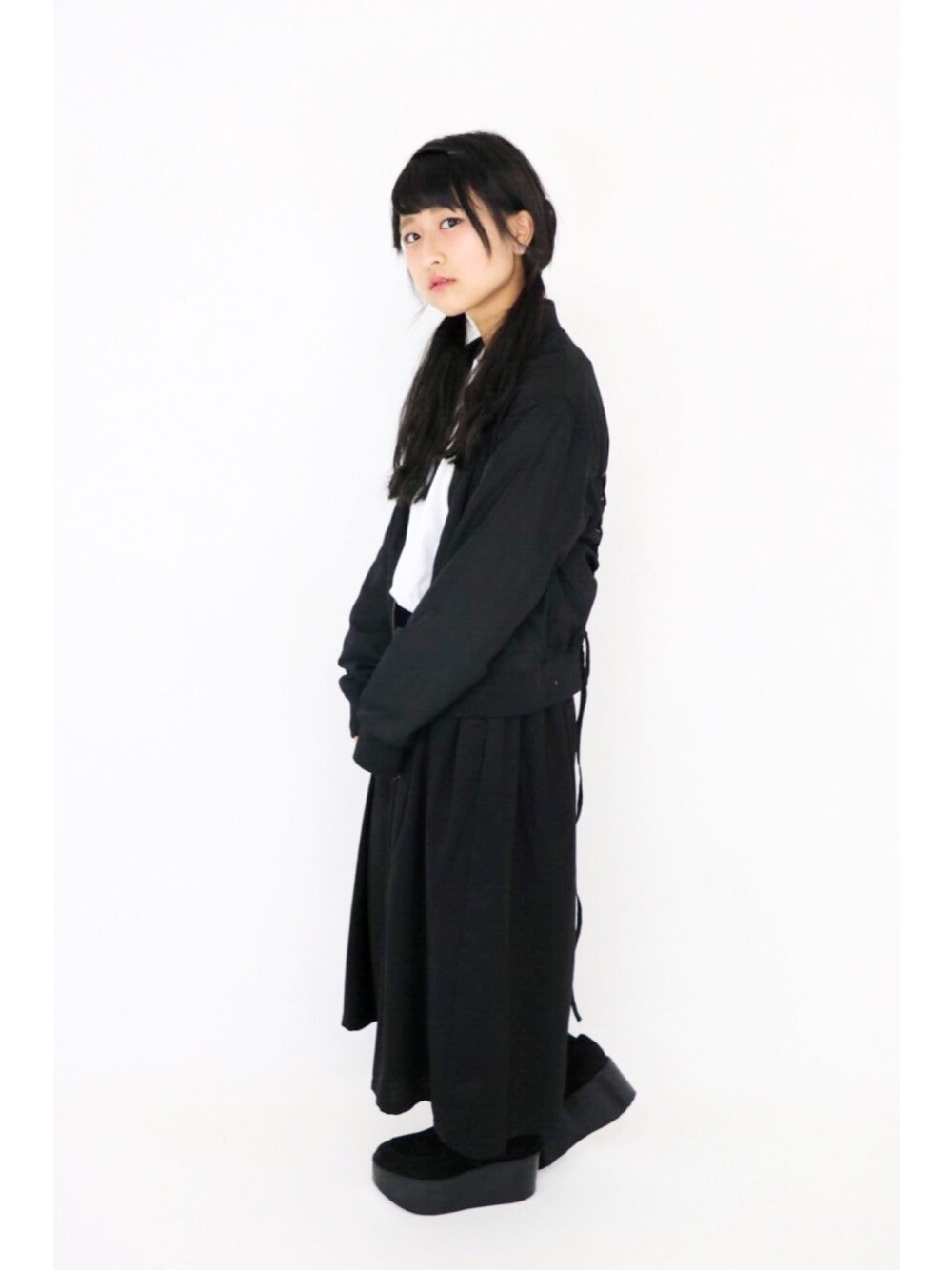 ブラックコーデ! 基本ダボっとした感じがすきなのでガウチョの広がりを利用してコーディネートしてみました!✌🏻️ 後はブルゾンの背中が編み込みになってるのでブラックコーデでも少し甘さをワンポイントとして加えるのもポイントです🙆🏻💗