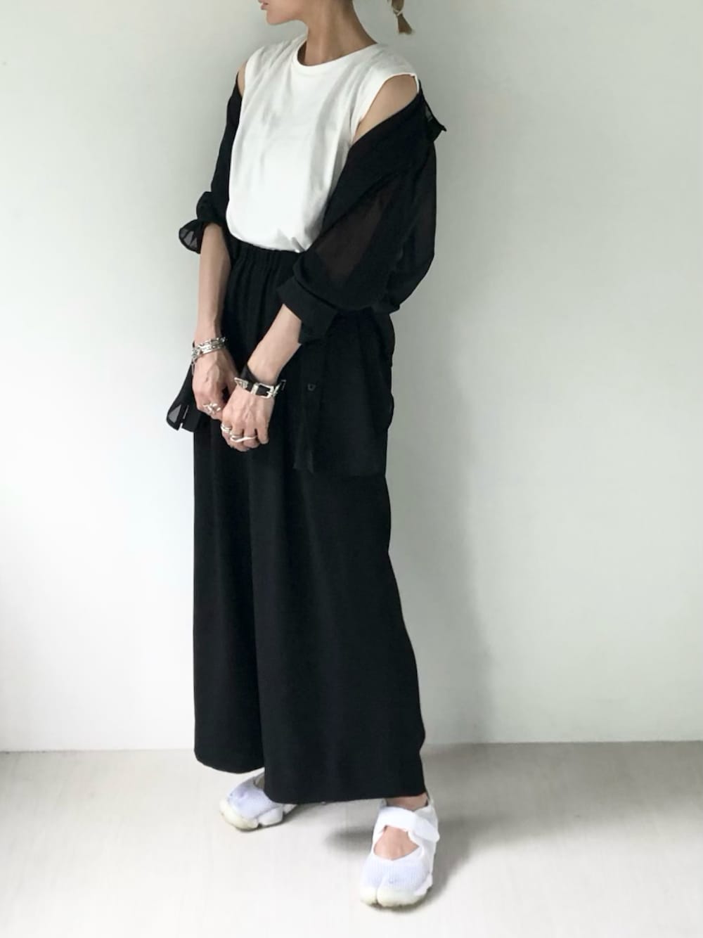 Ayaのタンクトップ「綿100%天竺.無地&ボーダーバックショルダータックノースリーブTシャツ」を使ったコーディネート