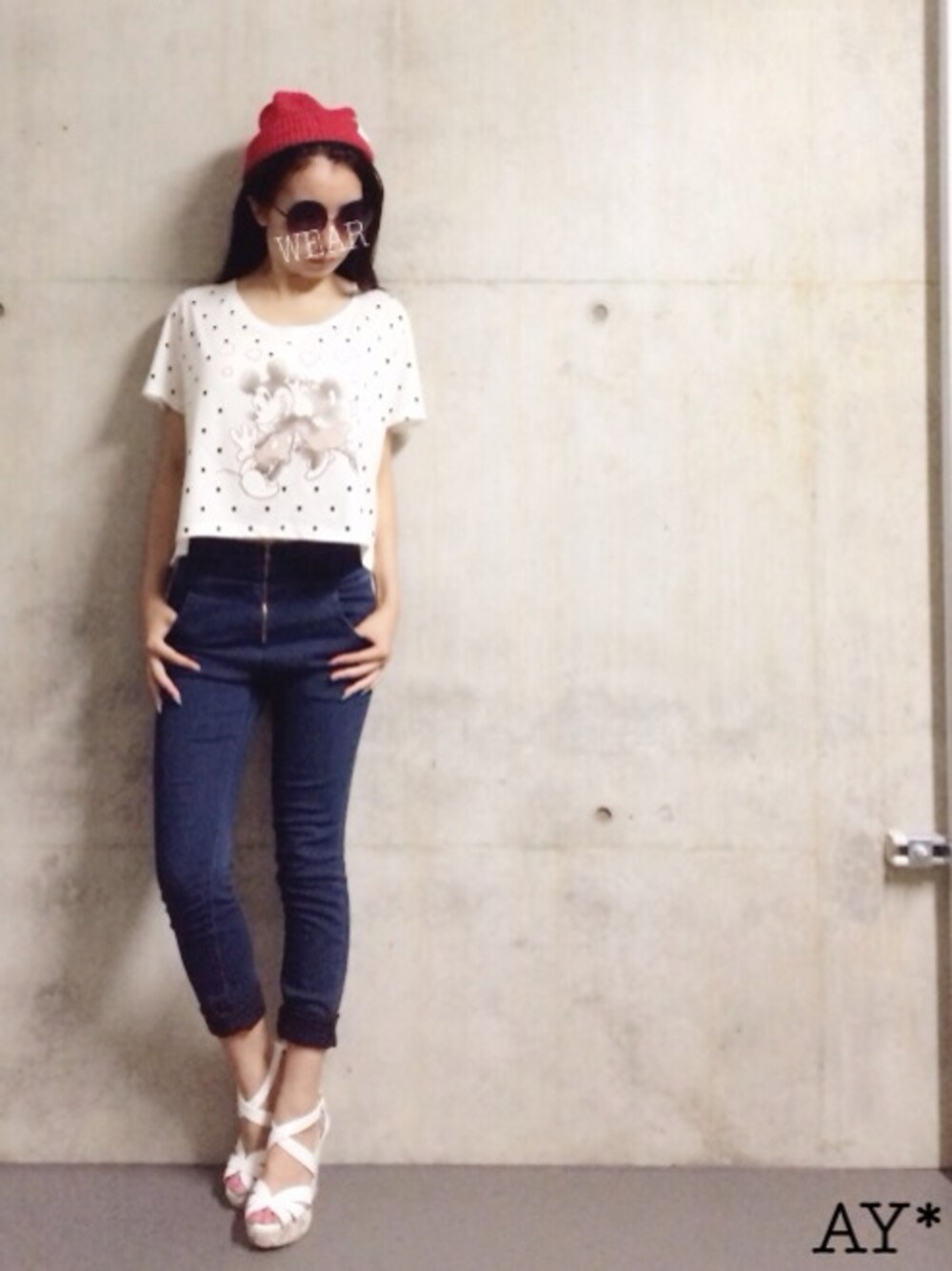 スニーカーにするか サンダルにするか迷ったけど、 昨日も書いた通り やっぱり短足をごまかしたいから サンダルにしました。笑 スタイルいいひとなら スニーカーがかわいいと思う♡