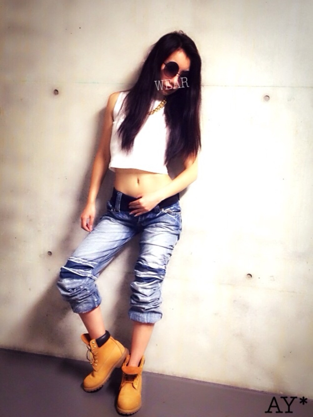 AY*のサングラス「丸サングラス」を使ったコーディネート