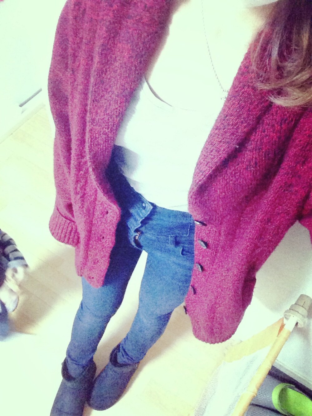 載せ忘れたコーデ💦 なんかチャック開いてるように見える(笑) 開いてませんので…(笑) カーデはMEN'Sもの! 旦那の借りた! 私が着るとロングカーデ♡ 楽チン〜!