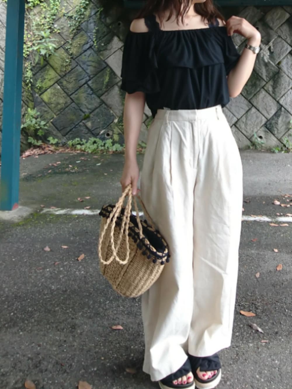 あ やのTシャツ/カットソー「2WAYラッフルオフショルダーT(半袖)」を使ったコーディネート