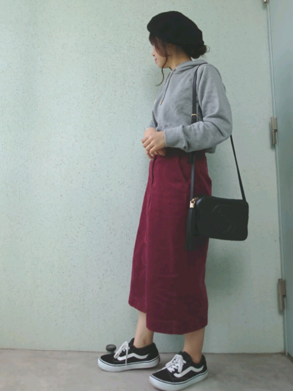 見てくださりありがとうございます🌸 Instagram⏩aya.wear08 コーデュロイスカート着回し🤗 パーカーは去年の物です。 ベレー帽のかぶり方が分かりません🤣