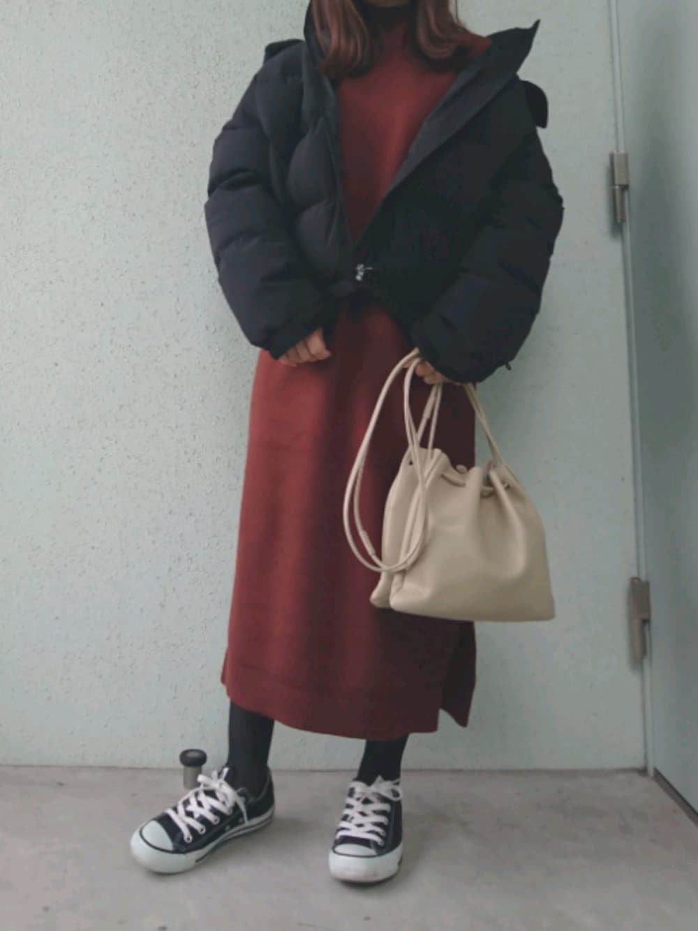 見て下さりありがとうございます✨ Instagram☺aya.wear08 GUのハイネックニットワンピース🤩 UNIQLOのよりネックが短くて 苦しくないです😊💄