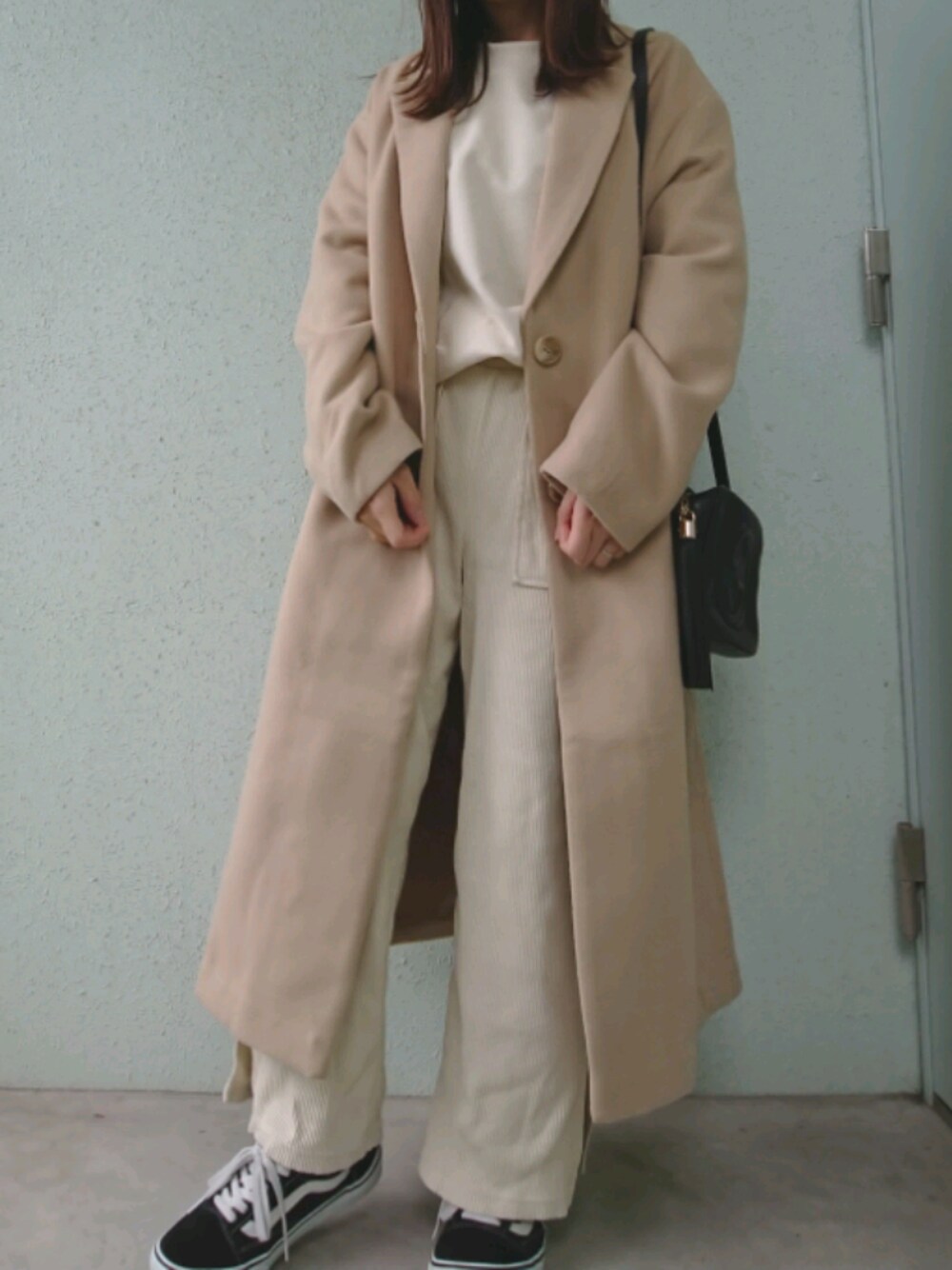 見て下さりありがとうございます✨ Instagram☺aya.wear08 リリーブラウンの福袋に 入っていたコートで ワントーンコーデ🥺 ベージュのアウター 持ってなかったから嬉しい!! 小物は黒で👍