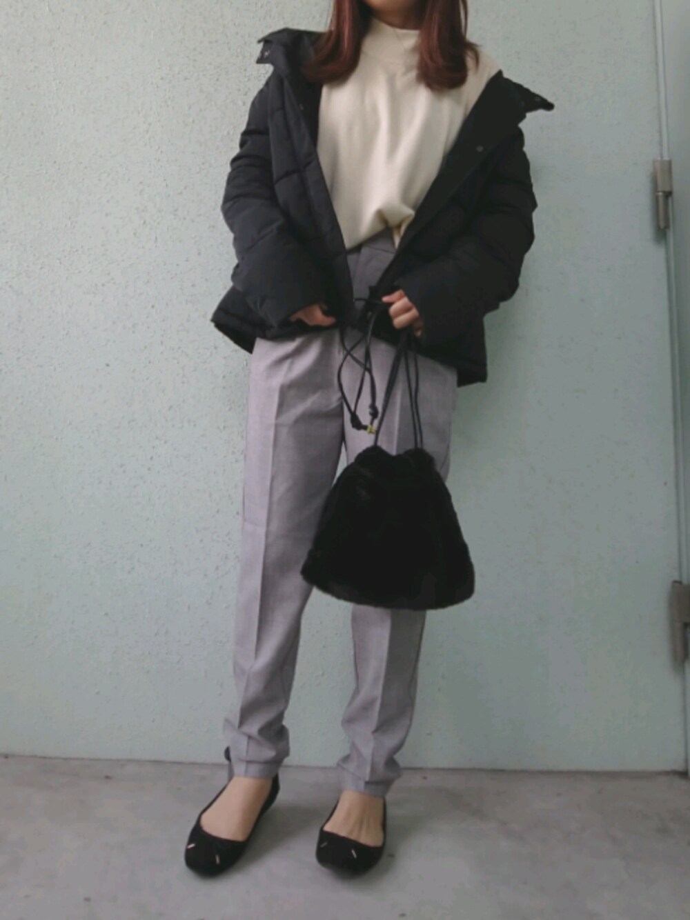 見て下さりありがとうございます✨ Instagram☺aya.wear08 ダウンジャケット着回します① ほとんどGU🤩🤩🤩 ハイネックニットの肌触りが気持ちぃ🥺 テーパードパンツとバレエシューズで ダウンやけどちょっとだけキレイめに。