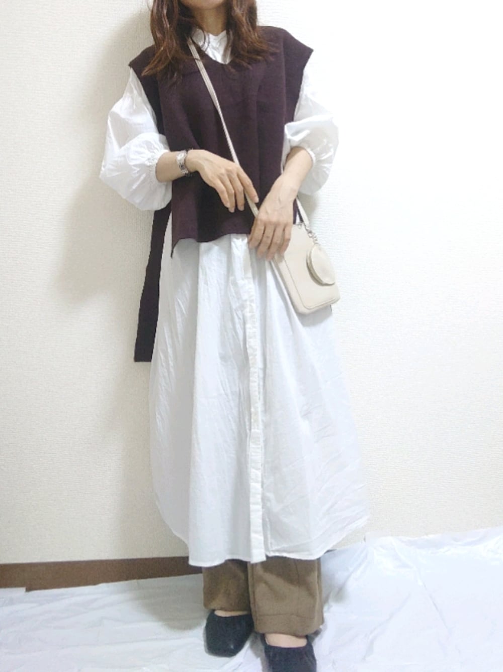 見てくださりありがとうございます✨ Instagram☺aya.wear08 ECRIREさんの Vネックニットベスト☺ もちっとした生地で肌触りがきもちいい✨ 着るだけで秋コーデになります🤤 クーポン出てます