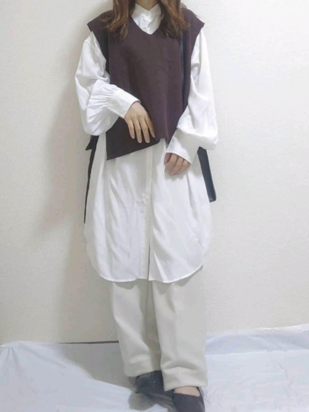 あ やのベスト「Vネックニットベスト」を使ったコーディネート