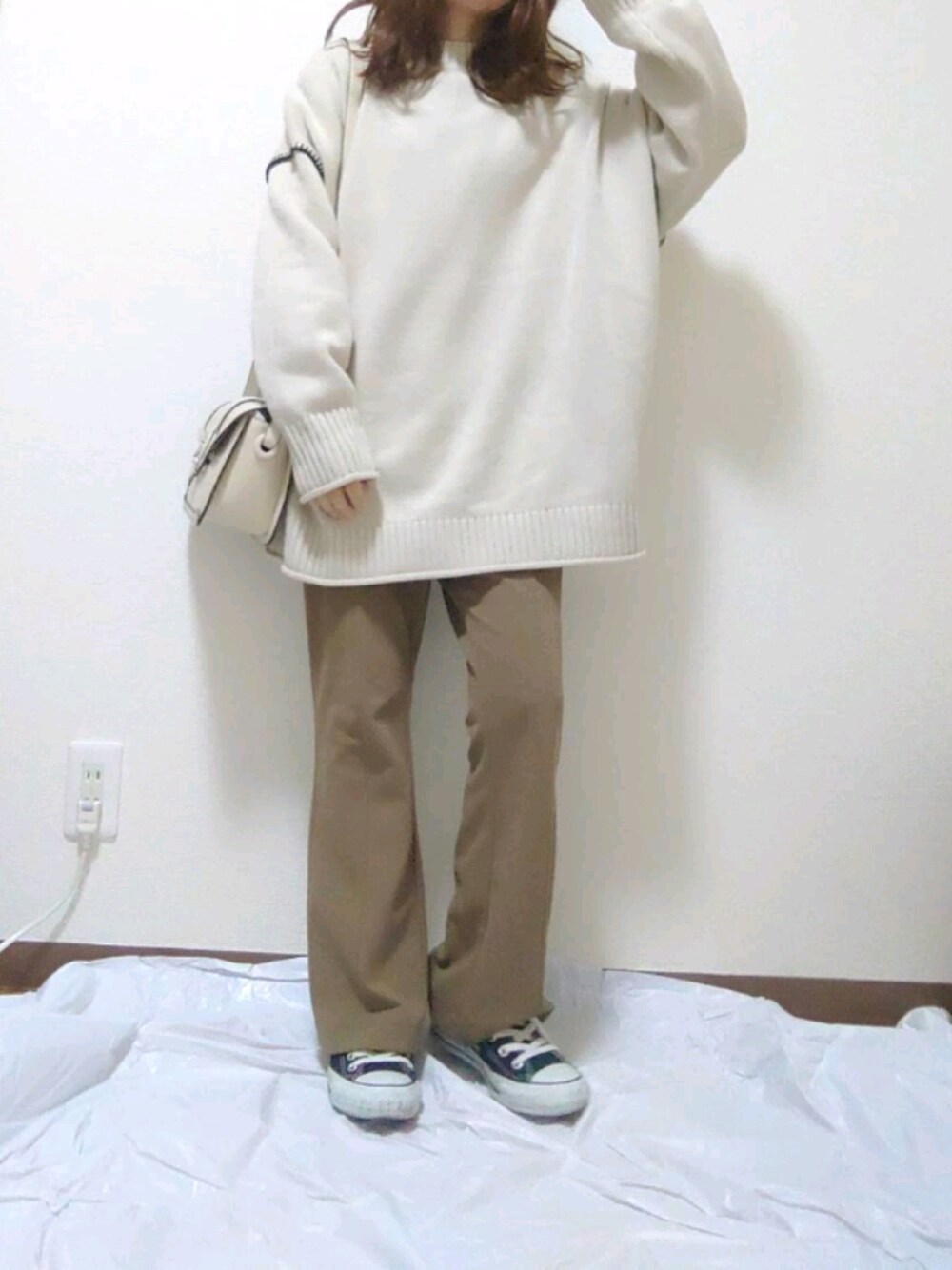 あ やのニット/セーター「ハイショクステッチプルオーバーLS 216127」を使ったコーディネート