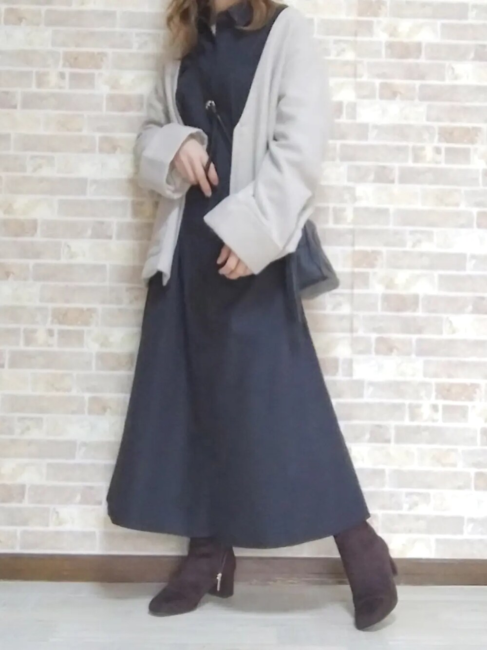 Instagram🪩@aya.wear08 @ecrire.jp ✕ @haushinka71 さん コラボジャケット🧥 厚みがあり、暖かいです♡ キレイめにも✨ タートルネックに合わせても可愛いだろうな😊