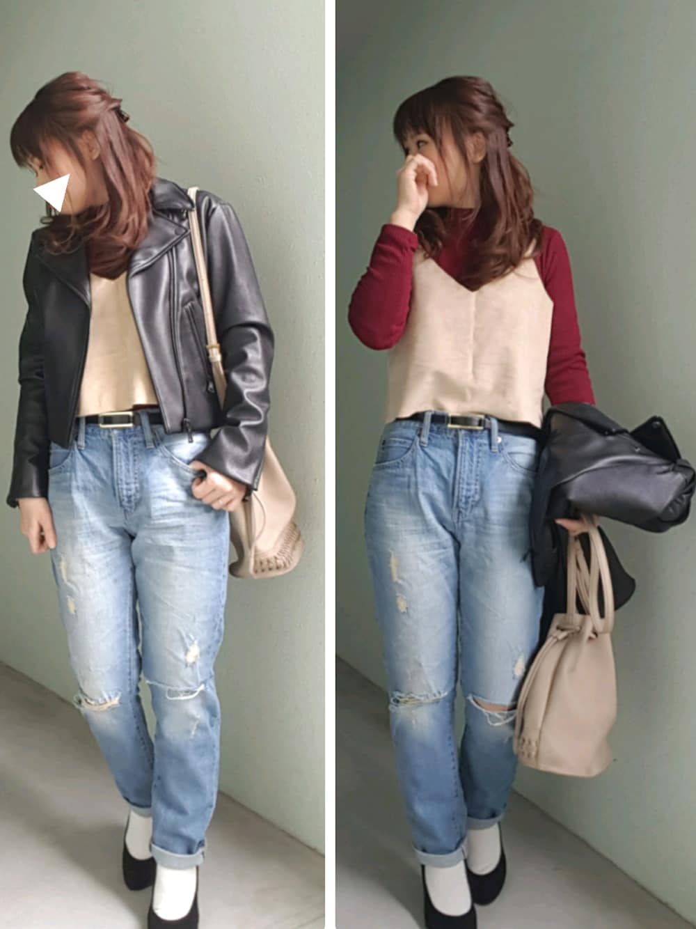 こんにちは☀ ご覧頂きありがとうございます☺💕 ピックアップタグの赤ニット♡とライダースをベースにあとは、春意識したつもりです🙈🌠 甘辛カジュアル☺←甘辛使いたいだけ🙊🎶笑 久しぶりにキャミのレイヤード♥ ヘアーはくるくる巻いて、ハーフアップのくるりんぱ👶 バレンタインですね💝 今年は何も用意してません😳💦笑