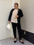 Instagramもしています❤️ フォロー・Instagramからご購入していただけると 励みになります🦋 からご覧頂けます📸 *ジャケット*(FTサイズ着用) ピッタリとしたサイズ感。 胸元・背中と肉付きがある為、前は閉じれませんが綺麗なシルエットです。 腕周りは窮屈感なしです◎ 161cmぽっちゃり体型で FREEサイズは着丈お尻まで、 FREE TALLサイズは着丈お尻より下でした。 ストレッチもあるので動きやすく、 流行り廃りのないノーカラーは1枚あると安心。 シワになりにくく、洗濯機でお手入れできます。 *トップス* ゆったりとしたサイズ感。 ボウタイは出しても、内側に入れて着ても大丈夫なデザインになっています◎ ピッタリしすぎずセレモニー・お仕事にもお使いいただけるアイテムです。 *ボトムス*(Lサイズ着用) ピッタリとしたサイズ感。 ウエストはピッタリですが、太もも・ふくらはぎはストレッチがあるので楽ちんです。 1本あると安心のテーパードパンツはキレイめなシーンで流行り廃りなくお使いいただけます◎ シワになりにくく、洗濯機でお手入れができます。