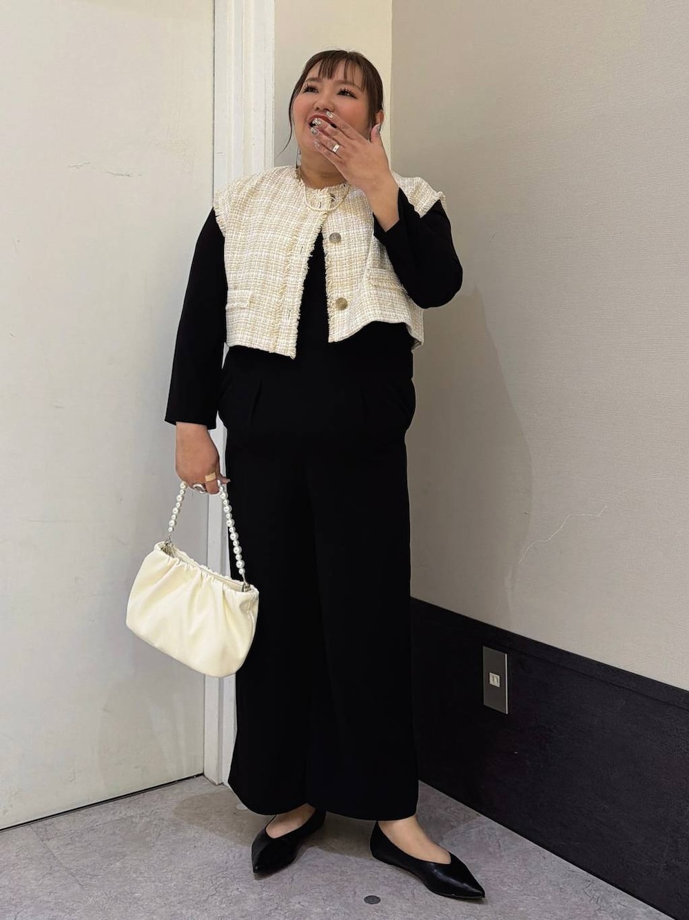 Instagramもしています❤️ フォロー・Instagramからご購入していただけると 励みになります🦋 からご覧頂けます📸 *ベスト* ゆったりとしたサイズ感。 ショート丈ですが脚長効果バッチリ♡ 少し前の印象があるツイードも今っぽくアップデートされております。 前閉じしても窮屈なく、ゆとりがあります。 *オールインワン* ピッタリとしたサイズ感。 お腹・胸元はピッタリ、他はストレッチがあり動きやすく着やすいです。 後ろはファスナーになっています◎ お腹さえ シワになりにくく、洗濯機でお手入れができるようになっています。