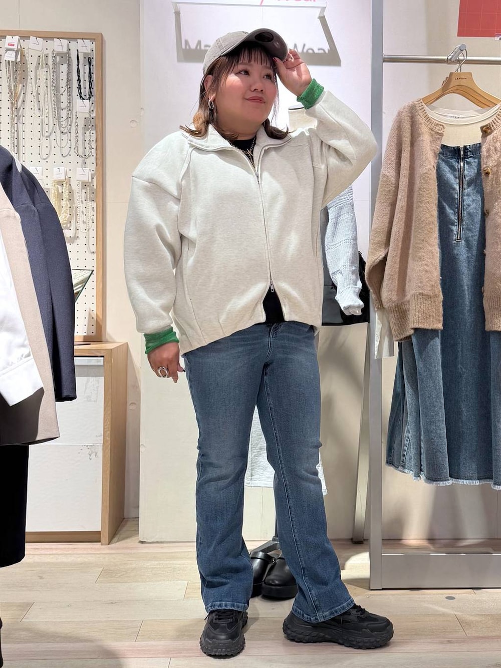 Instagramもしています❤️ フォロー・Instagramからご購入していただけると 励みになります🦋 からご覧頂けます📸 *トップス* ゆったりとしたサイズ感。 ハイネックに着てもそのままでもOK♡ 柔らかく軽いパフエアシリーズ。 ダブルジップで好きな着方をできます◎ 羽織りにもオススメ! *ボトムス*(Lサイズ着用) ちょうど良いサイズ感。 ウエストは正直ギリギリです⋯(笑) 穿けてしまえば凄く楽なデニム。 伸縮性もあり動きやすさもバッチリ◎ セミフレアのシルエットで形も綺麗です!
