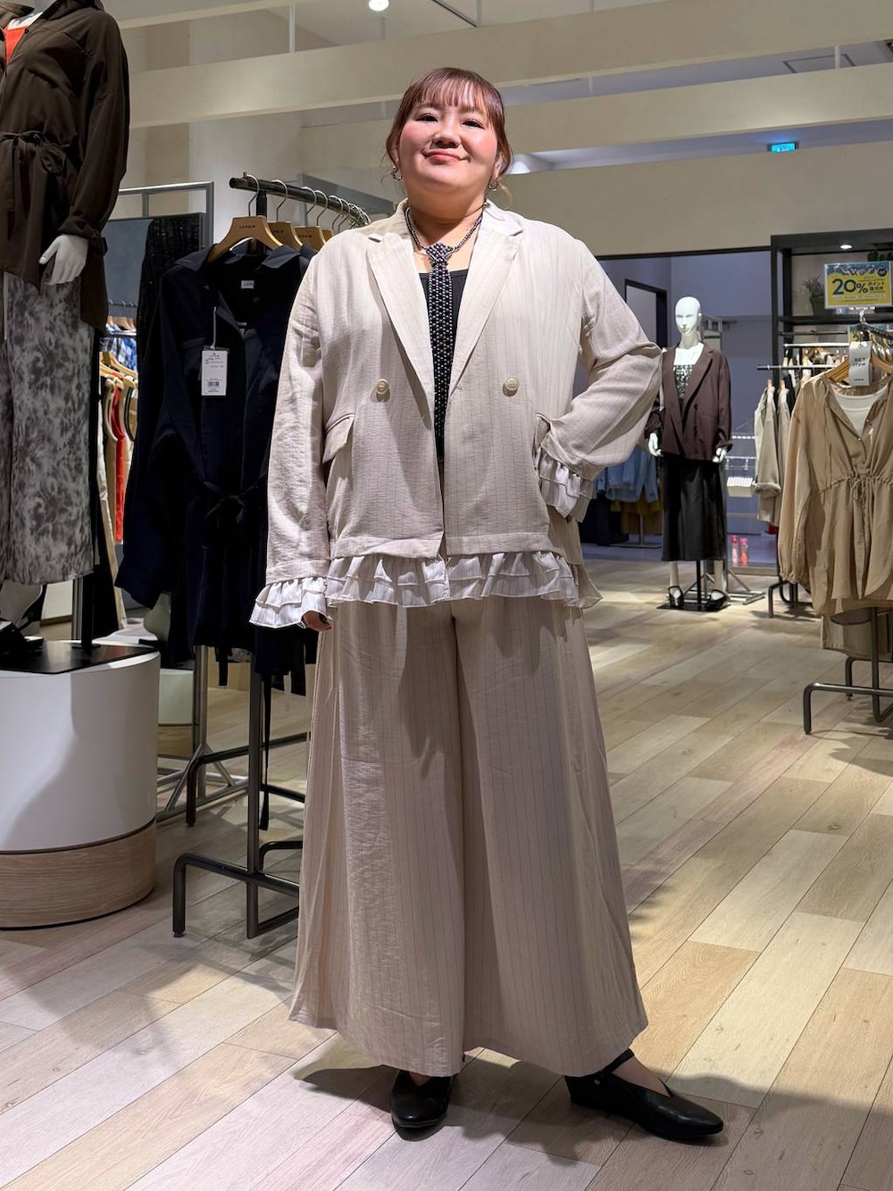 Instagramもしています❤️ フォロー・Instagramからご購入していただけると 励みになります🦋 からご覧頂けます📸 Officeラインが可愛い🩷 甲府昭和店にも入荷しています! *ジャケット* ゆったりとしたサイズ感。 裾と袖のフリルは外して着ることもできます◎ オーバーサイズなので動きやすく、 セットアップでの着用もオススメ。 軽いジャケットをお探しの方にも。 *ボトムス* ゆったりとしたサイズ感。 ウエストはボタンで留める形ですが、 窮屈なく穿けました。 (後ろはゴムになっています) カナリ広がりのあるワイドパンツですか 落ち感はあるのでまとまります! スウェットなど合わせても可愛いです♡