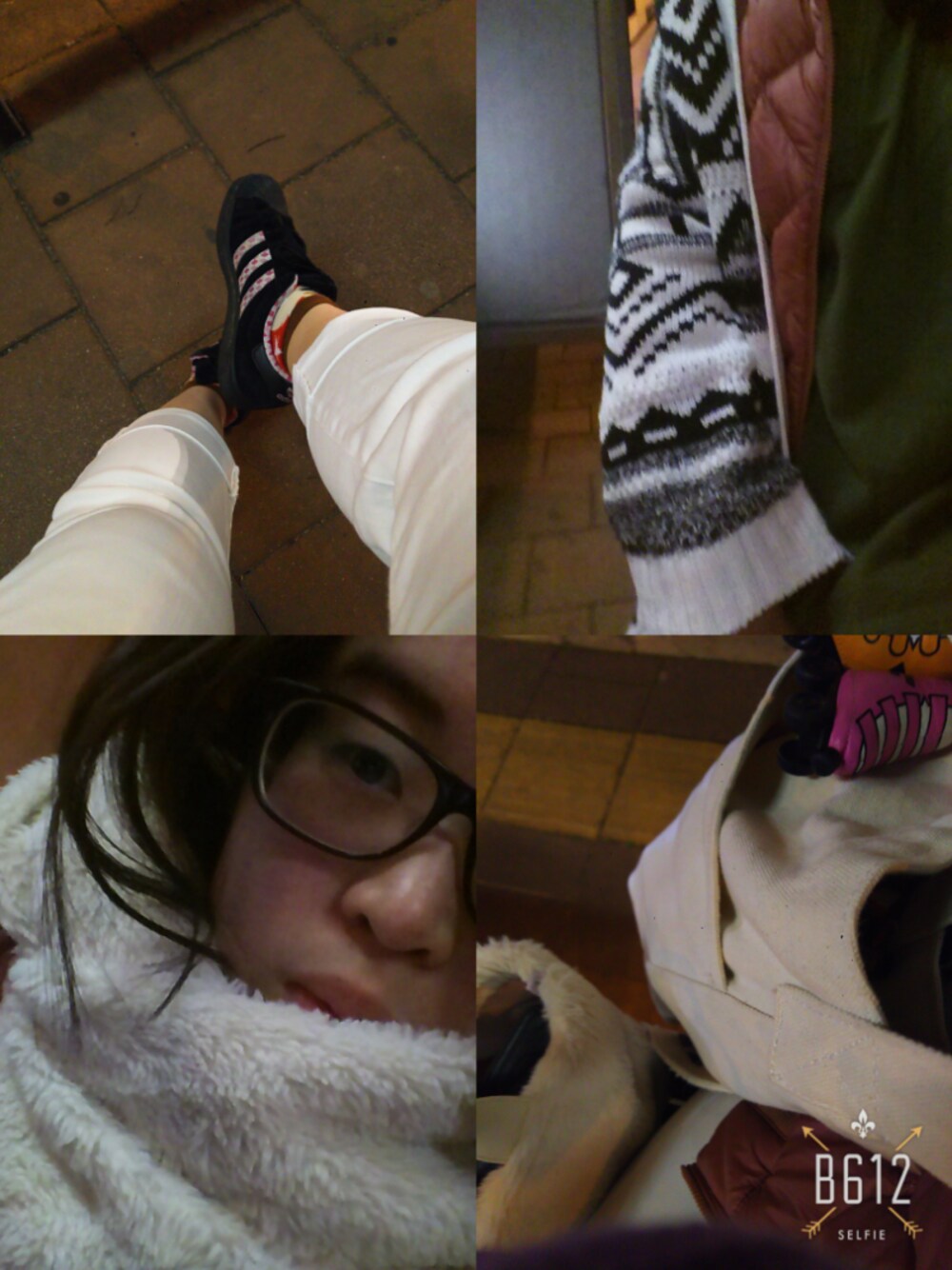 ダウンはMA-1タイプ。 外側のロングニットカーディガンはB級品で¥500でゲットしてたもの。裾がフリンジみたいになってる。 ボトムとスニーカーは色あいをみてpickup!