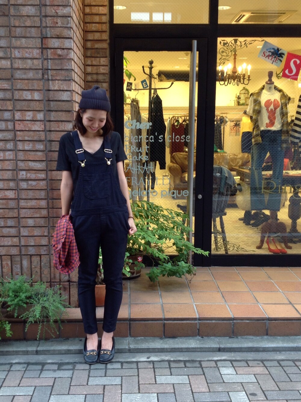 B&Bの新作のサロペットを着回して 今日はシンプル秋コーデ♡ 定番の丸胴Tシャツは去年のものですが 褪せずに使える万能Tシャツ◎