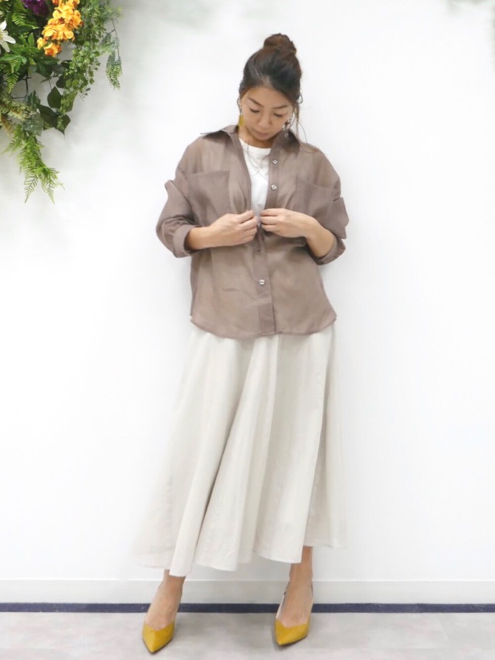 今年トレンドのシアーシャツ☆ 大人っぽいモカはオススメカラー★ ¥5,900とプチプラ☆ 大人っぽく着れるコーディネートです★☆★ Instagram @fashion_ayand