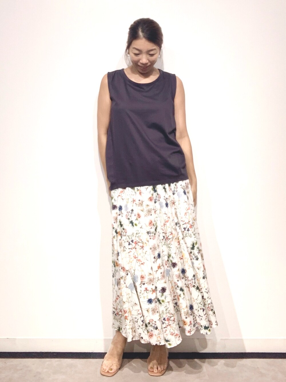 ゆったりカットソーにウエストゴムの大人ゆるコーデ❤︎ 大人気の8枚ハギロングスカートから新作のボタニカル柄が登場☆ ウエストはオールゴムで伸縮性があるので安心感あるデザインに★ バックコンシャスがpointカットソーとあわせてカジュアル感と少しビンテージ感のあるオススメcoordinateです☆★☆