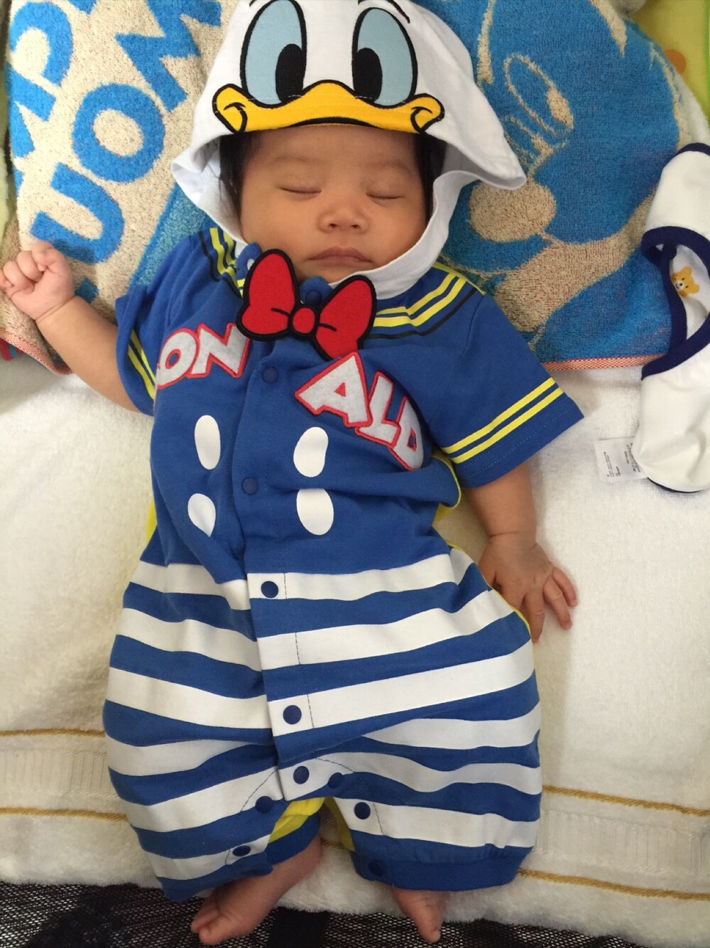 ブルー系のロンパースを着用したキッズの夏コーディネートの1枚目の写真
